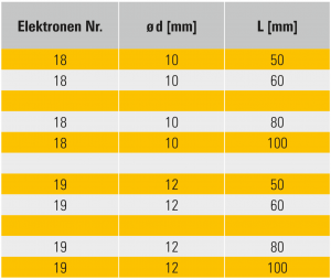 Bestellangabe: Elektroden Nr. -Länge 18-100
