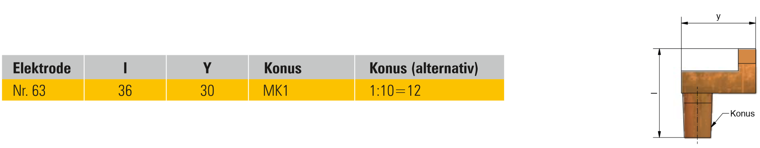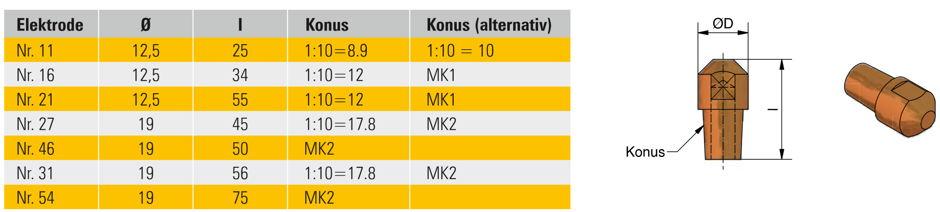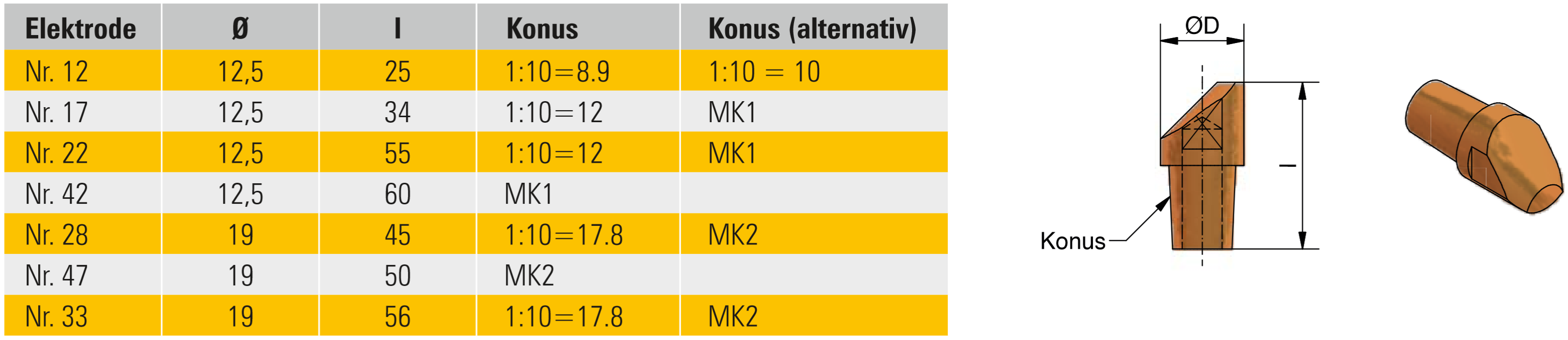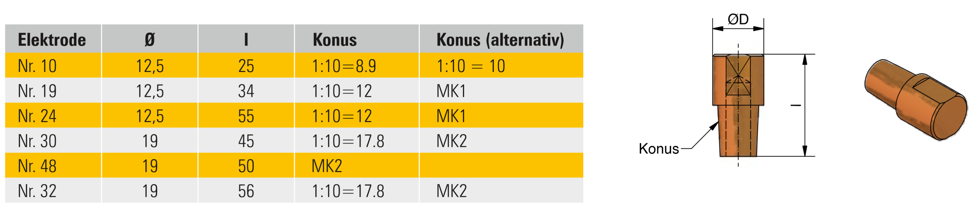 Bestellangabe: Elektrodentyp [ Nr.] - Sitz [ Kegel ] - Länge [ L ] 25-K8-75
