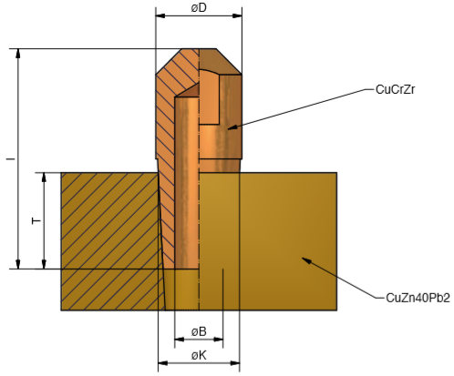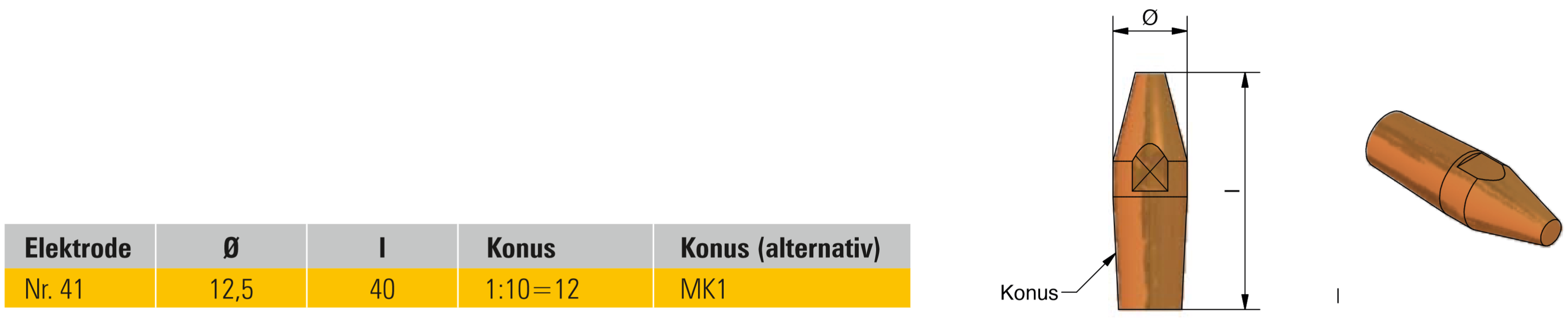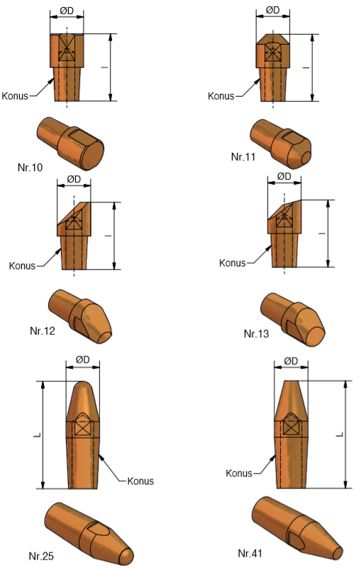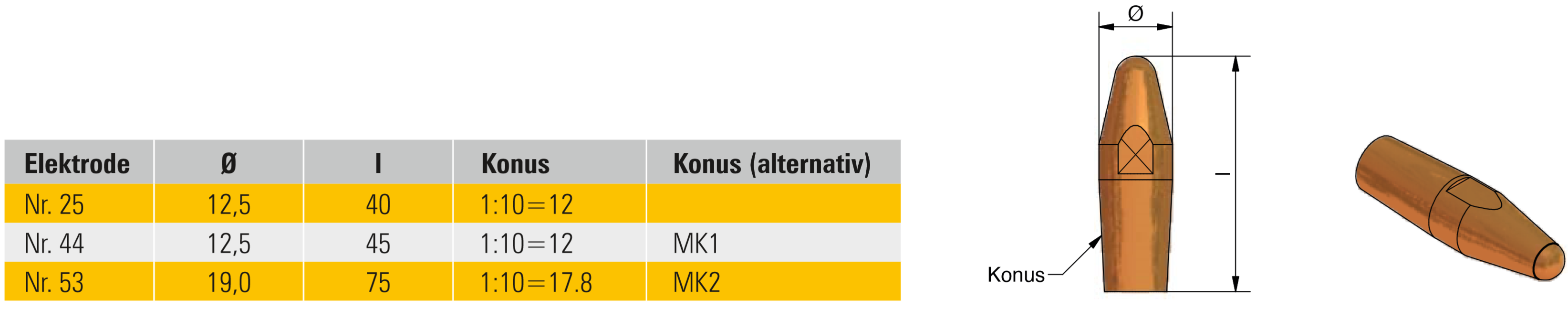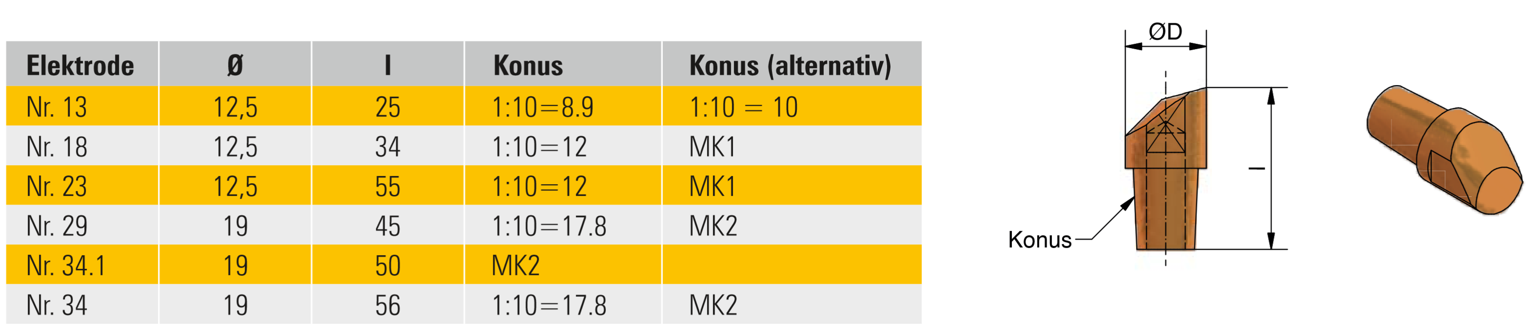 Bestellangabe: Elektrodentyp [ Nr.] - Sitz [ Kegel ] - Länge [ L ] 25-K8-75