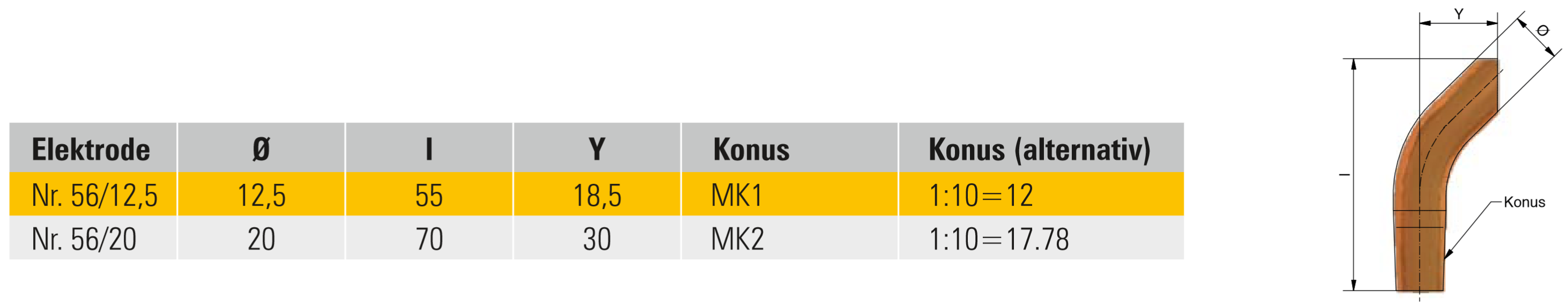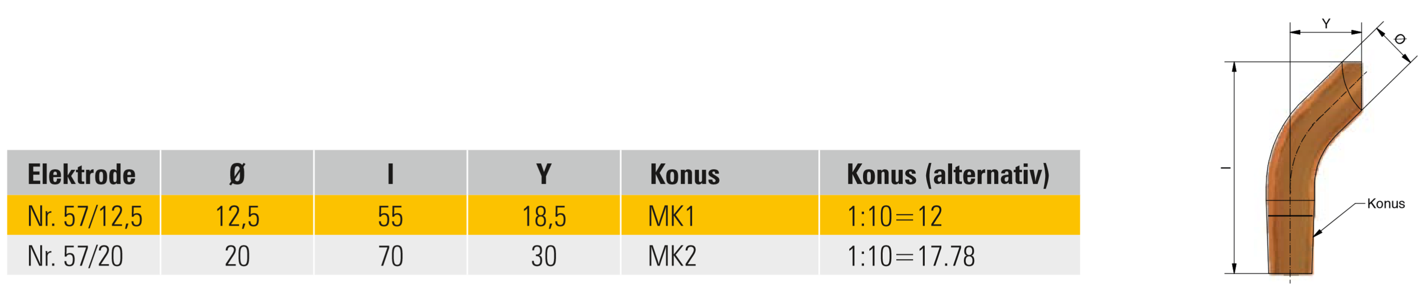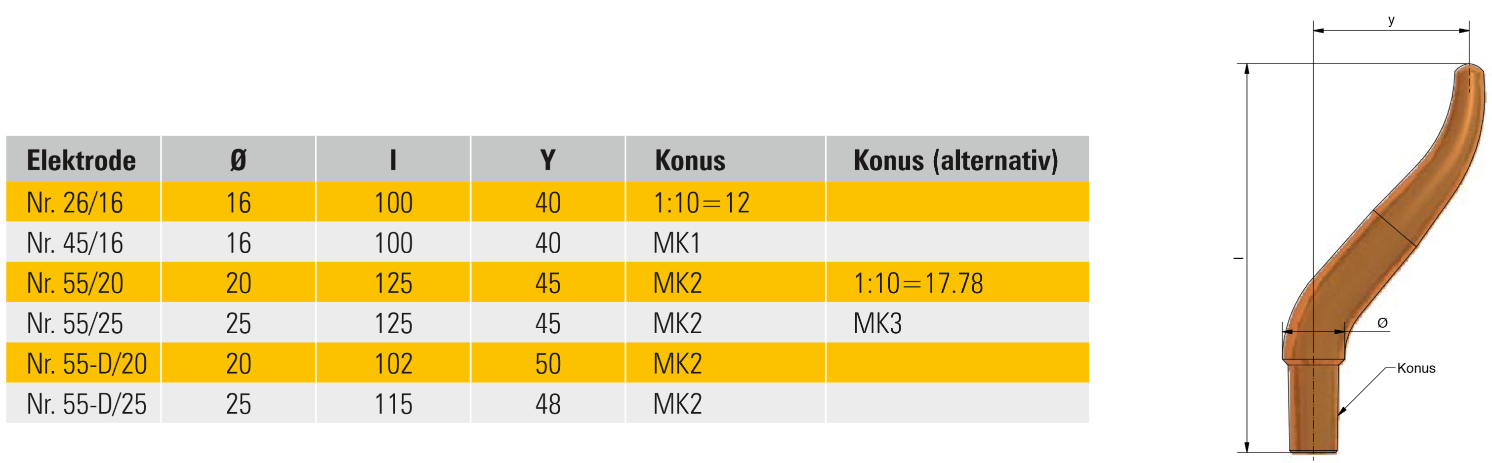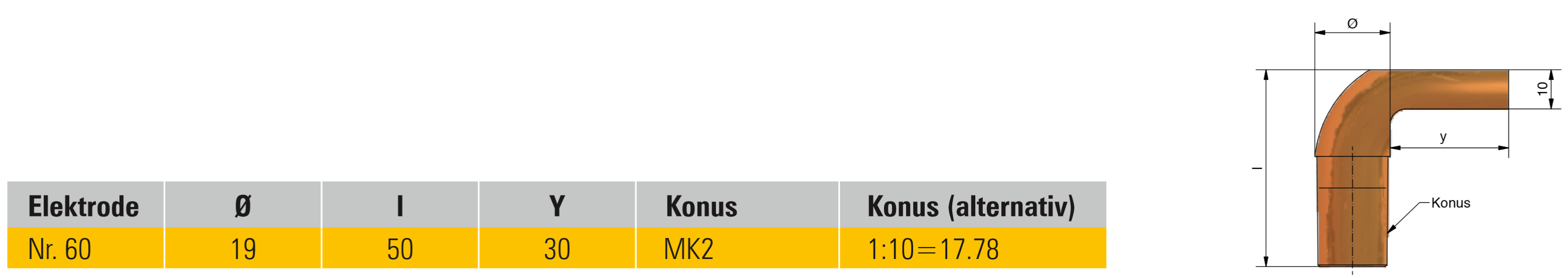 Alle gekröpften Elektroden können in der Ausladung und Länge nach Ihren Wünschen geändert werden
