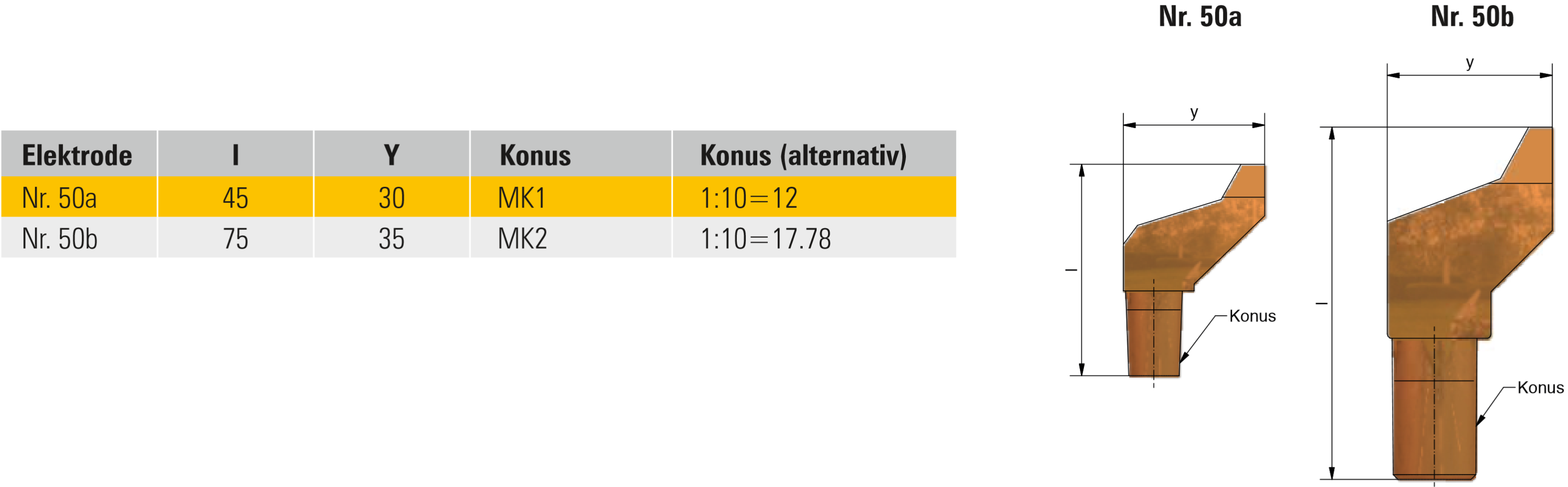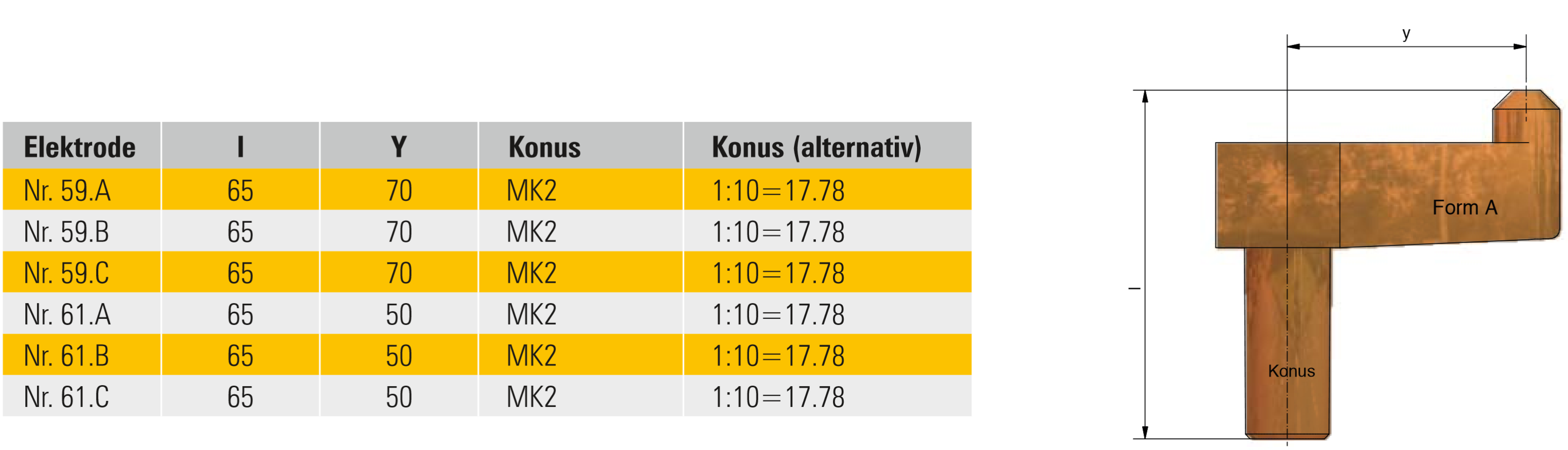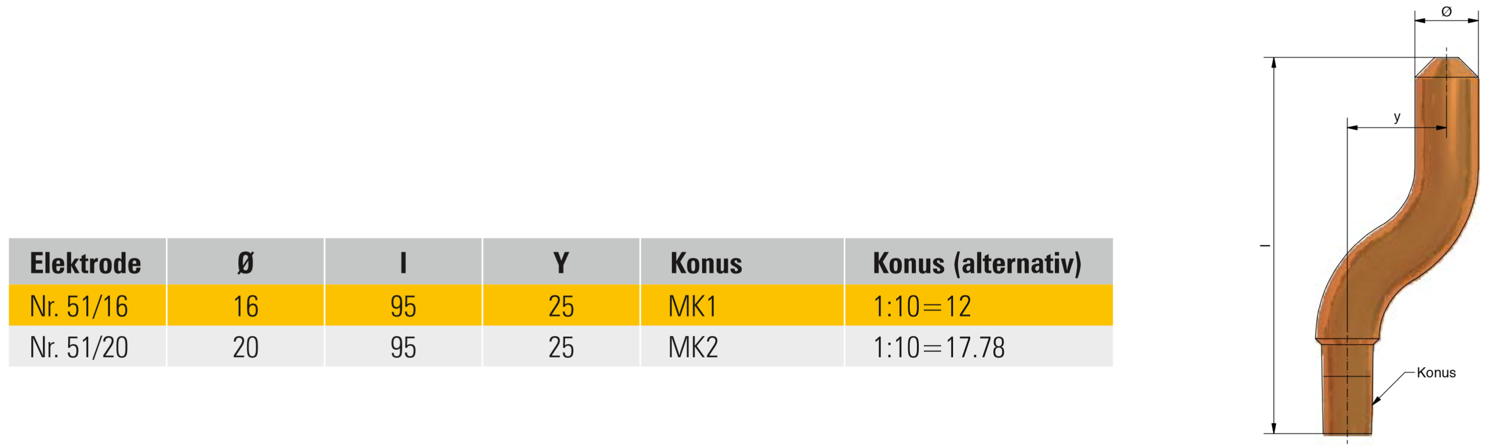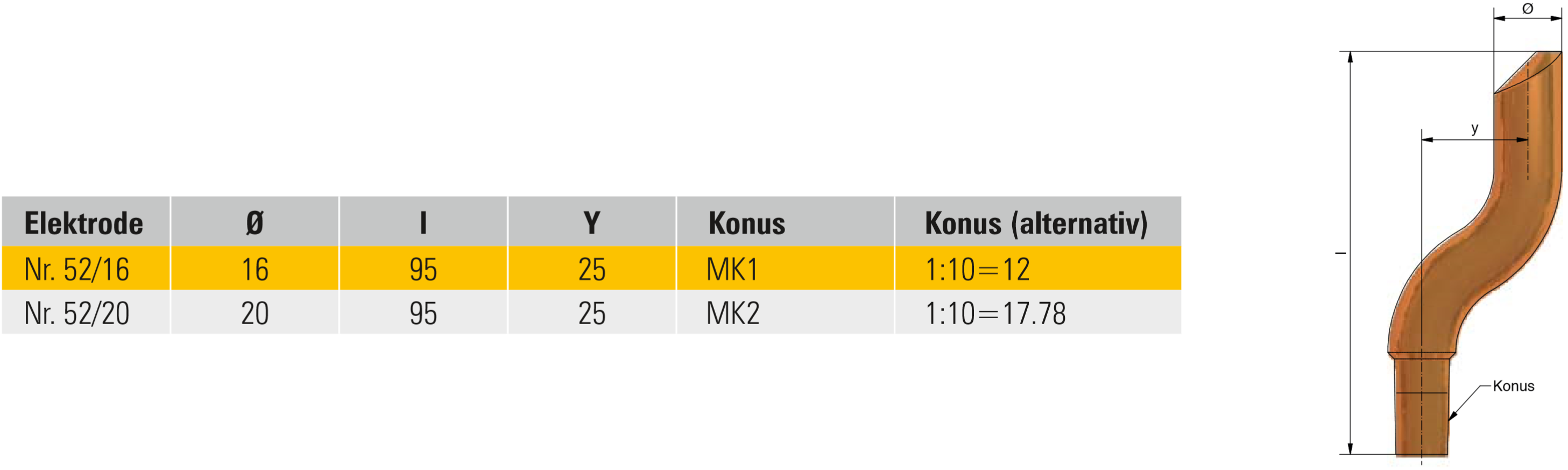 Alle gekröpften Elektroden können in der Ausladung und Länge nach Ihren Wünschen geändert werden