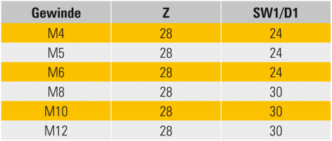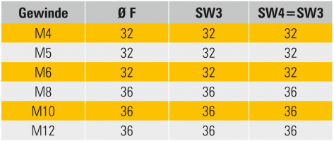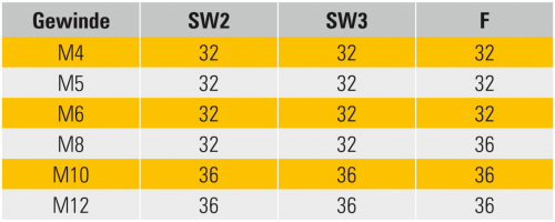 Bestellangabe: Typ 002 für Gewinde M6, Stift A2 und MK2. MSW-001-M6-A2-MK2
