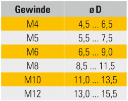 Bestellangabe: Gew. - Typ - ø D M6 - A2 - 8,6