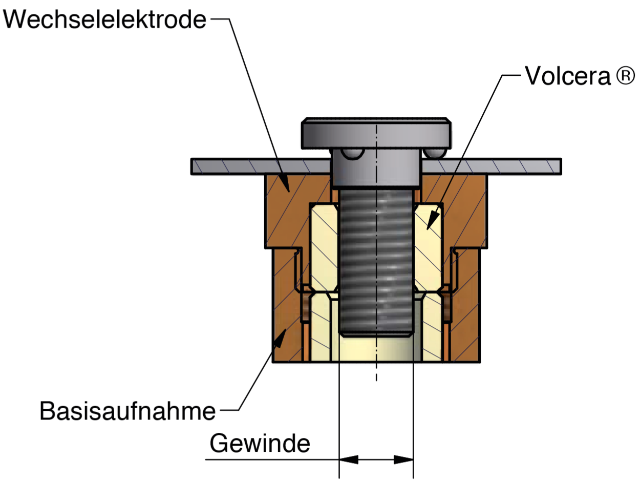 Werkstoff: : Zentrierhülse in Volcera ®, Elektrode in CuCrZr