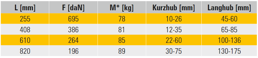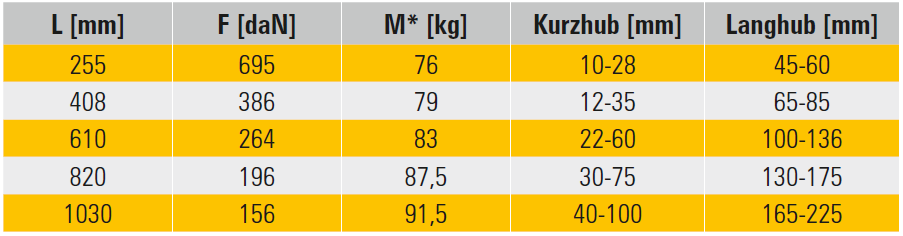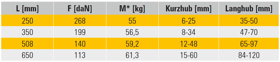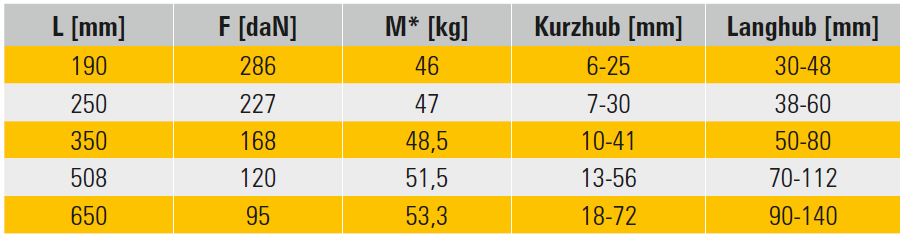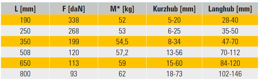Kurzhub: 5-20 mm; Langhub: 35-50 mm