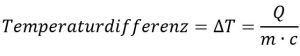 In Abhängigkeit der spezifischen Wärmekapazität des jeweiligen Materials und der im Prozess wirksamen Masse lässt sich die durch die Wärmeenergiezufuhr verursachte Temperaturdifferenz beim Widerstandsschweißen überschlägig bestimmen, wenn Energieströme auf das Umfeld durch Wärmeleitung, Wärmestrahlung und Konvektion vernachlässigt werden:
